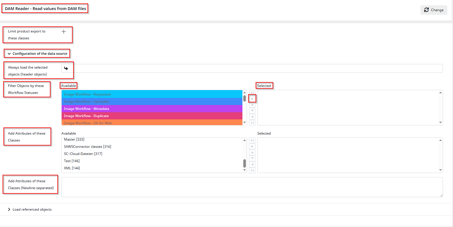 “Attributes that reference other objects” is a very useful feature. It allows you to specify attributes that reference other DAM Files, such as related images. This can be particularly helpful if you want to export both the DAM File and its associated objects.