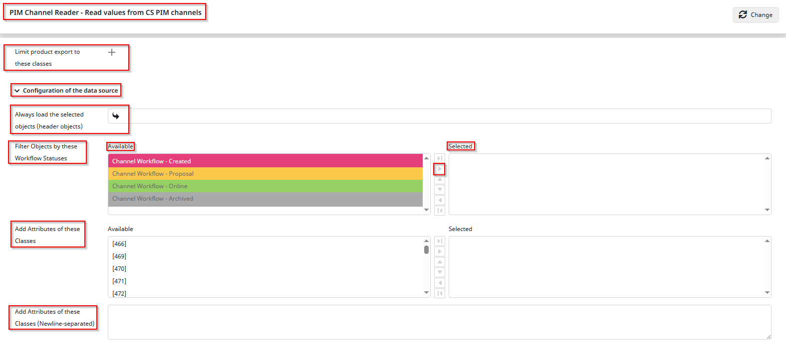 “Limit product export to these classes” does exactly what it says: it limits the Value Reader to the selected classes. For example, if you apply the Electronics class, the Channel reader will only read values that are assigned to that class.